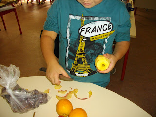 Foi uma grande aventura porque a professora ensinou-nos a descascar a fruta...